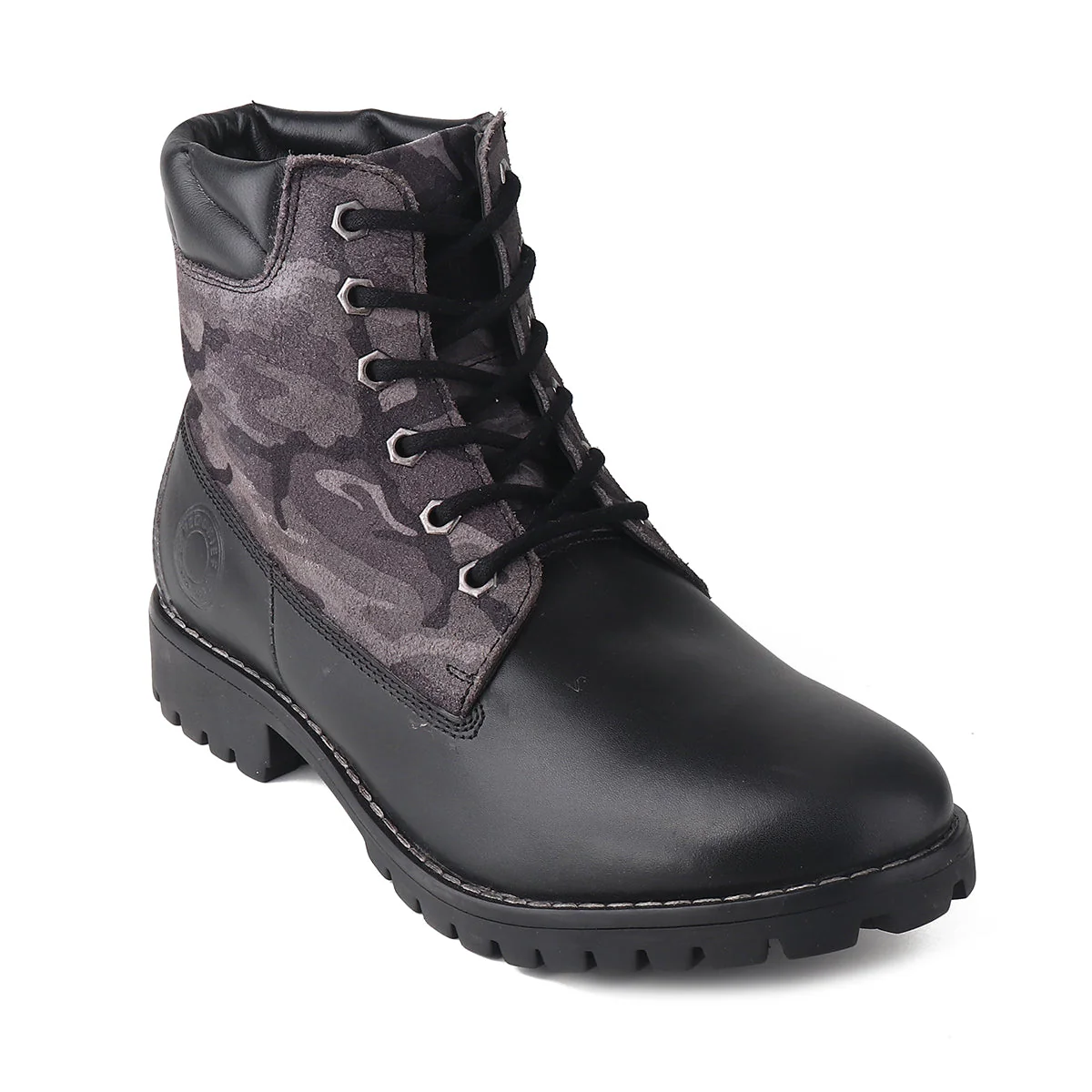 Add a tough and edgy look to your casual outfit with these black boots by Red Chief. Having the classic high-ankle silhouette with a side camouflage trim, these boots instantly uplift your look and outfit. Having TPR-made soles, these boots also ensure a firm grip on every terrain.